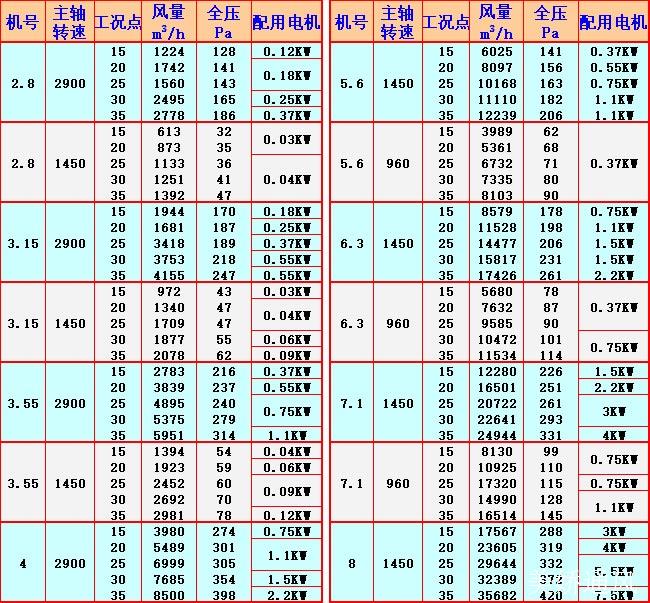 T35軸流風機系列產品均采用葉輪直接裝在電動機軸上的直聯結構。在葉輪圓周速度不超過60m/S條件下配用三種轉速:2900、1450、960r/min,面對進風口方向看葉輪為逆時針轉動,進氣方向在葉輪端。